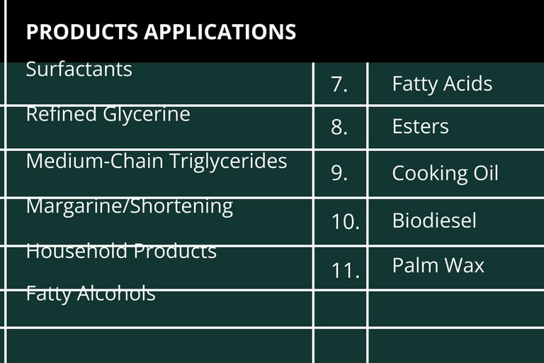 As part of our processing capabilities, CPO is further refined and fractionated into products such as Palm Olein, the liquid fraction commonly used in cooking oil and food manufacturing, and Palm Stearin, the solid fraction widely utilized in margarine, shortening, and specialty fats. Similarly, PKO undergoes processing to produce various oleochemical derivatives for industrial applications.